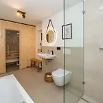 חדר האמבטיה מצויד באמבטיה ומקלחת ברשות האורחים.